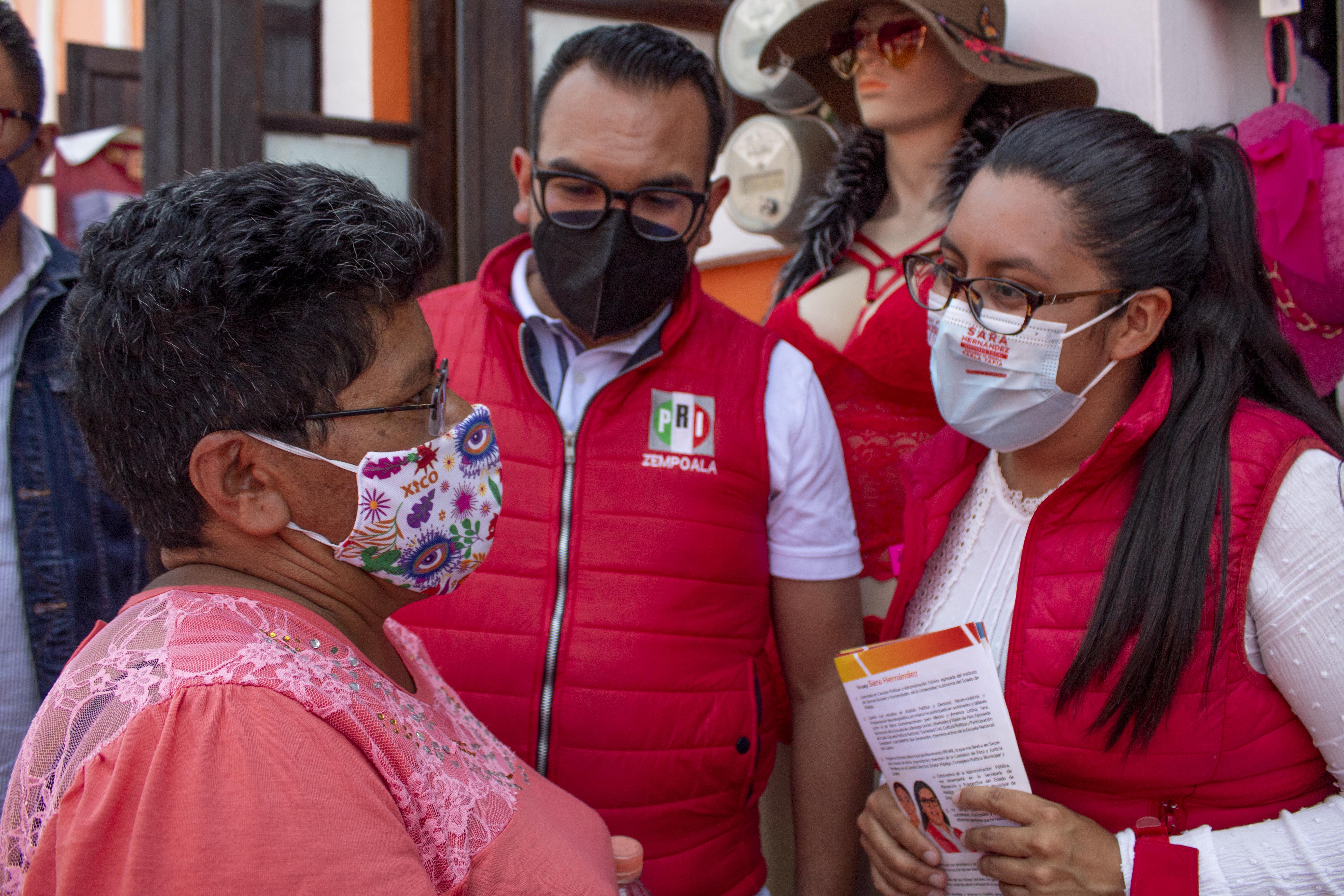 Como parte de su gira política, la priista Sara Hernández charló con cada uno de los tianguistas que se colocan en la plaza pública el día domingo y con los comerciantes fijos del primer cuadro de Zempoala, donde planteó parte de sus propuestas y brindó atención para escuchar las demandas del gremio.