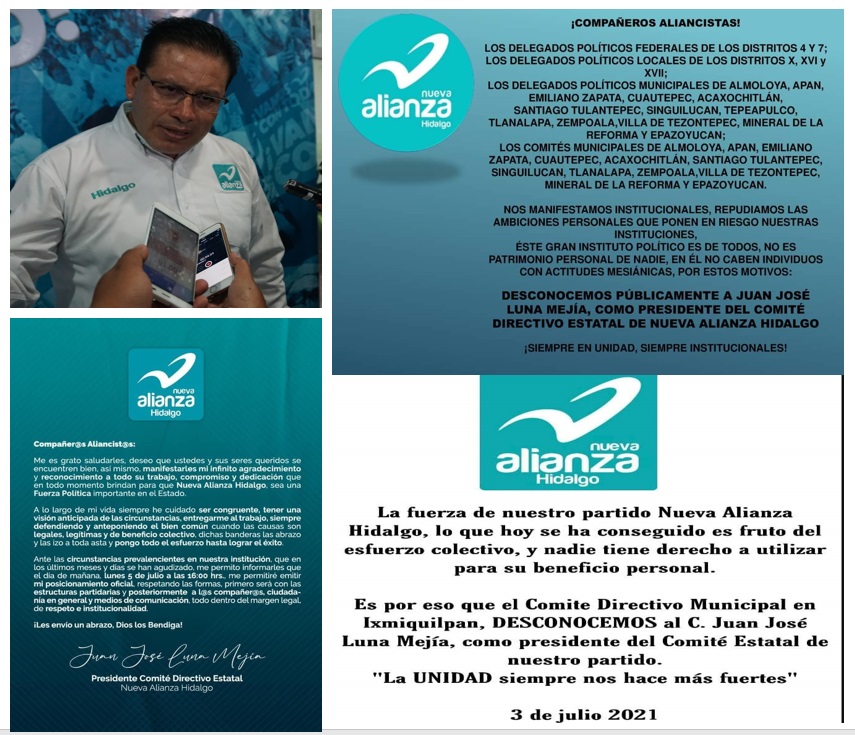 Delegados políticos del Partido Nueva Alianza Hidalgo (PANALH) se declararon en rebelión en contra del dirigente del citado instituto, Juan José Luna Mejía, a quien desconocieron del cargo.