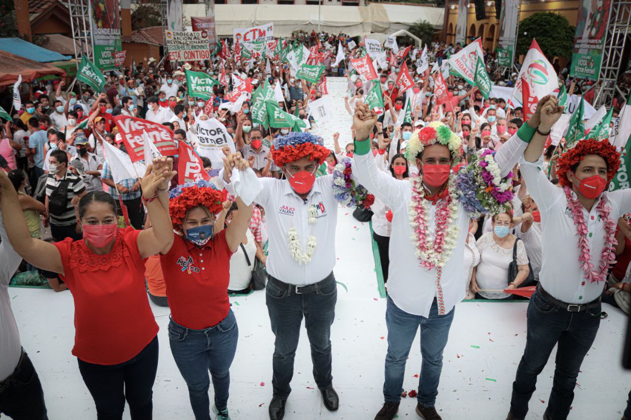 El dirigente del Comité Directivo Estatal del Partido Revolucionario Institucional (PRI) en Hidalgo, Julio Valera Piedras, acudió a los cierres de campaña de Erika Rodríguez Hernández, candidata a diputada por el distrito local VIII Actopan; Héctor Meneses Arrieta, candidato a diputado federal por el distrito VII Tepeapulco; y Fernel Guzmán Arvizu, aspirante a diputado local por el distrito III San Felipe Orizatlán.