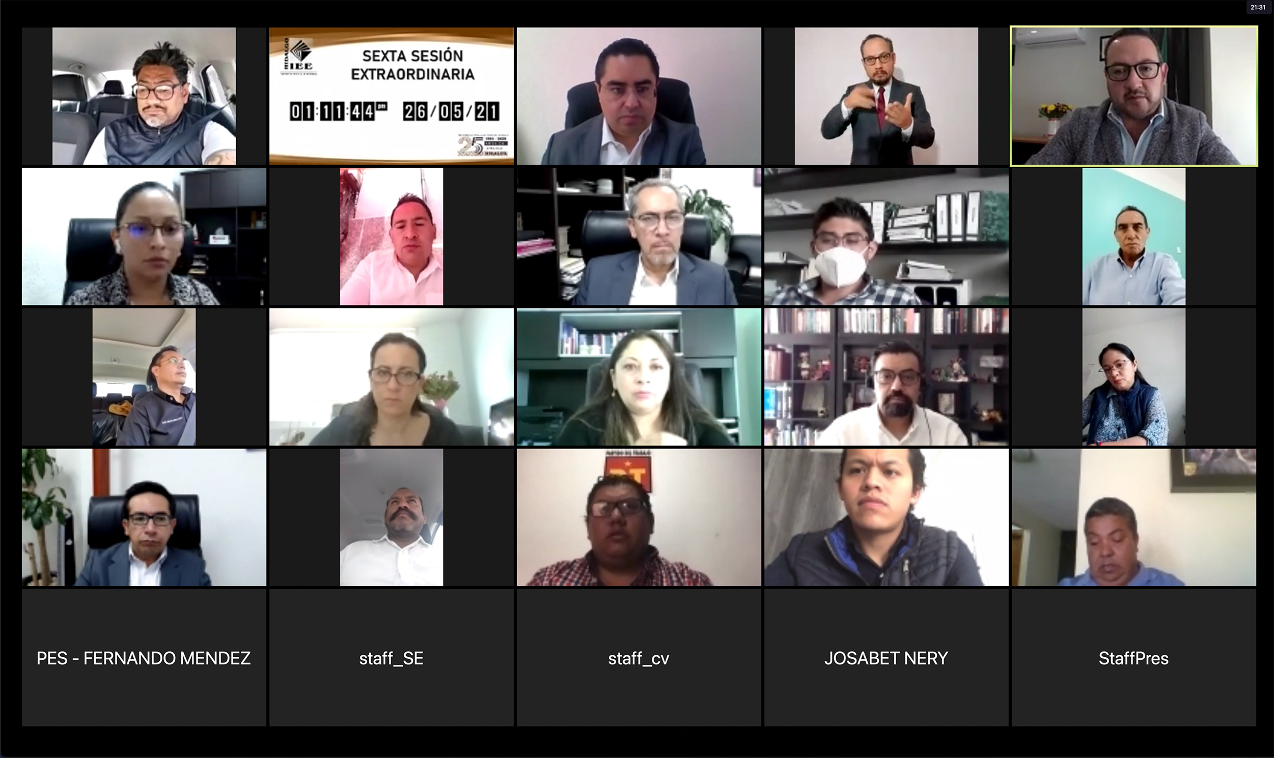 Durante la sexta sesión extraordinaria del mes de mayo del Consejo General del Instituto Estatal Electoral de Hidalgo (IEEH), se dio cumplimiento a dos sentencias emitidas por la Sala Regional Toluca del Tribunal Electoral del Poder Judicial de la Federación (TEPJF) referentes al Proceso Electoral Local Ordinario 2020-2021.