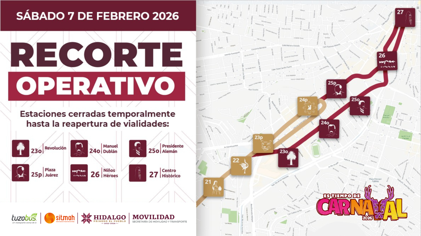 La Secretaría de Movilidad y Transporte, a través de su organismo sectorizado, el Sistema Integrado de Transporte Masivo de Hidalgo (Sitmah), impulsó medidas operativas y logísticas en torno al evento “Es Tiempo de Carnaval 2026”, el cual se llevará a cabo el próximo sábado 7 de febrero en la ciudad de Pachuca de Soto.
