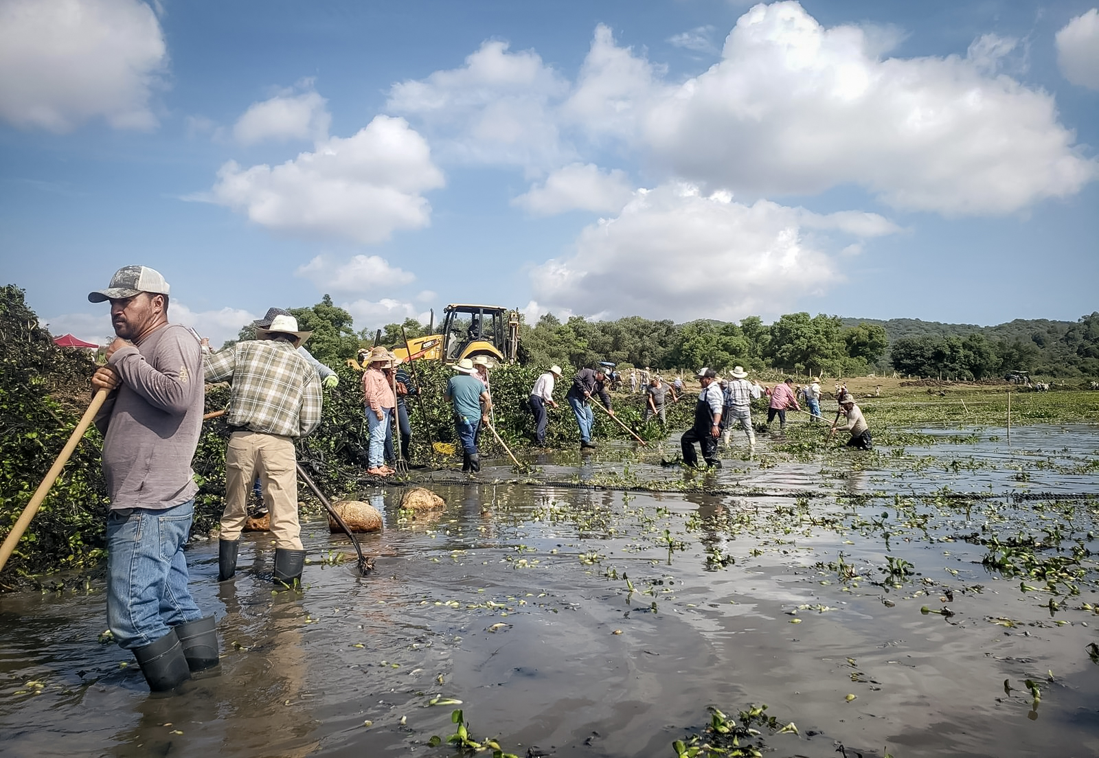 Autoridades reportan avance del 76% en el retiro del lirio acuático en ese cuerpo de agua
