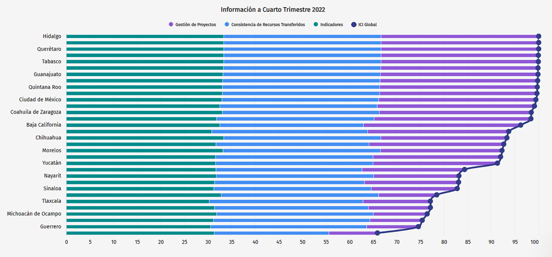 El índice mostró un promedio nacional de 90.75 puntos, colocando a Hidalgo en la cima con 100 puntos.