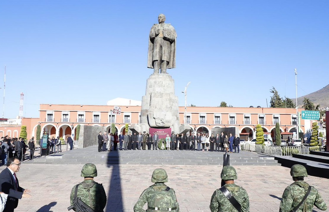 Ante funcionarios públicos, estudiantes y asistentes en general se rindió homenaje al expresidente Benito Juárez con motivo del 217 aniversario de su natalicio