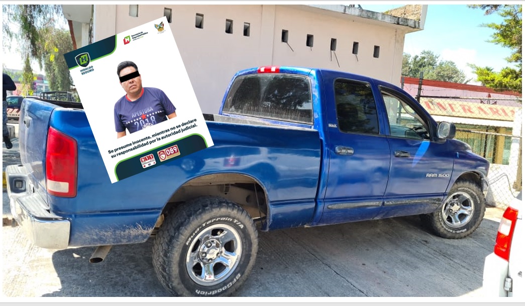 La persona se desplazaba en una camioneta Dodge Ram, color azul, con placas del Estado de México, sobre la carretera Tezontepec de Aldama-Achichilco, en la que le detectaron contenedores con combustible.