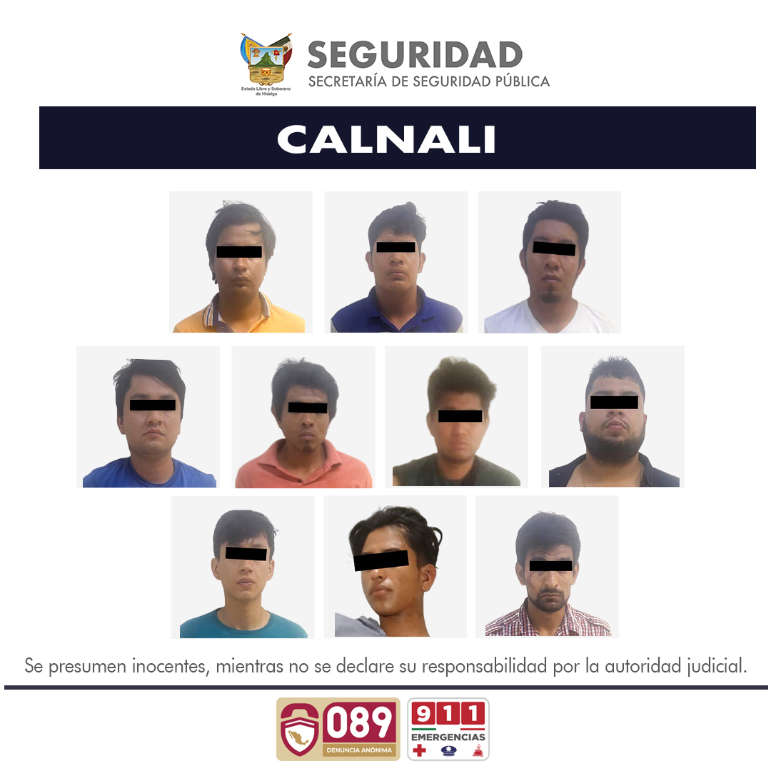 En operación conjunta, agentes de la Secretaría de Seguridad Pública de Hidalgo (SSPH), y elementos de las policías de Calnali, Molango y Xochicoatlán, llevaron a cabo la detención de 10 integrantes de una banda delictiva presuntamente dedicada a la extorsión, al cobro de piso y secuestro en la huasteca hidalguense.