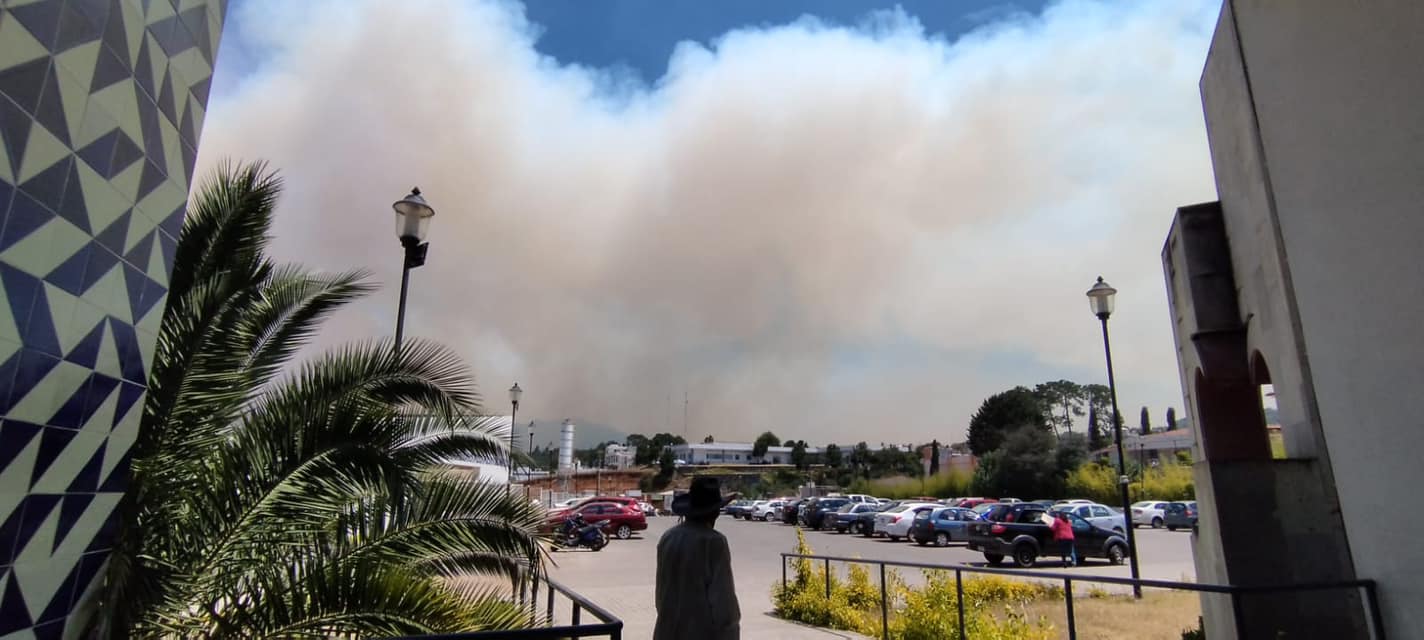 El gobierno municipal de Apan declaró fuera de control un incendio forestal registrado en el vecino municipio de Zacatlán, el cual ha cubierto de humo el territorio municipal.