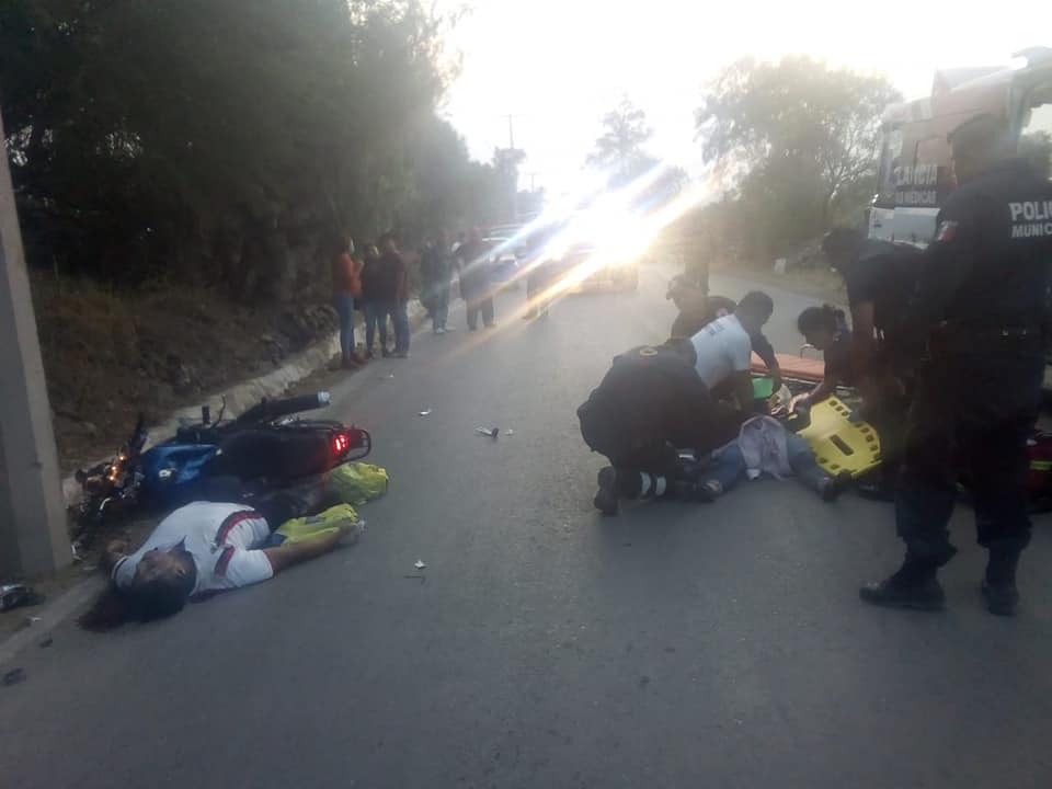 Se registró un fuerte accidente sobre la carretera Tlahuelilpan-Munitepec en el que se involucraron los tripulantes de una motocicleta Marca Italika, color azul con negro.