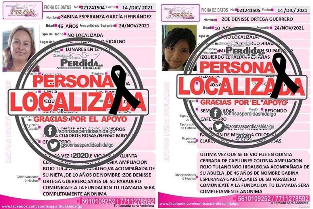 Tras casi dos meses de que fueron reportadas como desaparecidas, una mujer y su nieta fueron localizadas sin vida.