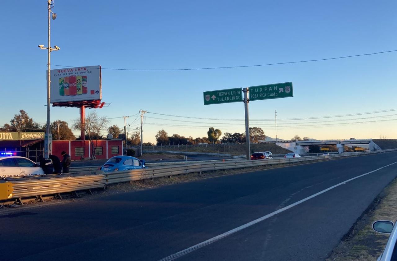 La noche de este miércoles una unidad del transporte público individual tipo taxi impactó contra una grúa sobre la carretera México- Pachuca, inspectores del Sistema de Transporte Convencional de Hidalgo (STCH) acudieron a verificar los pormenores.