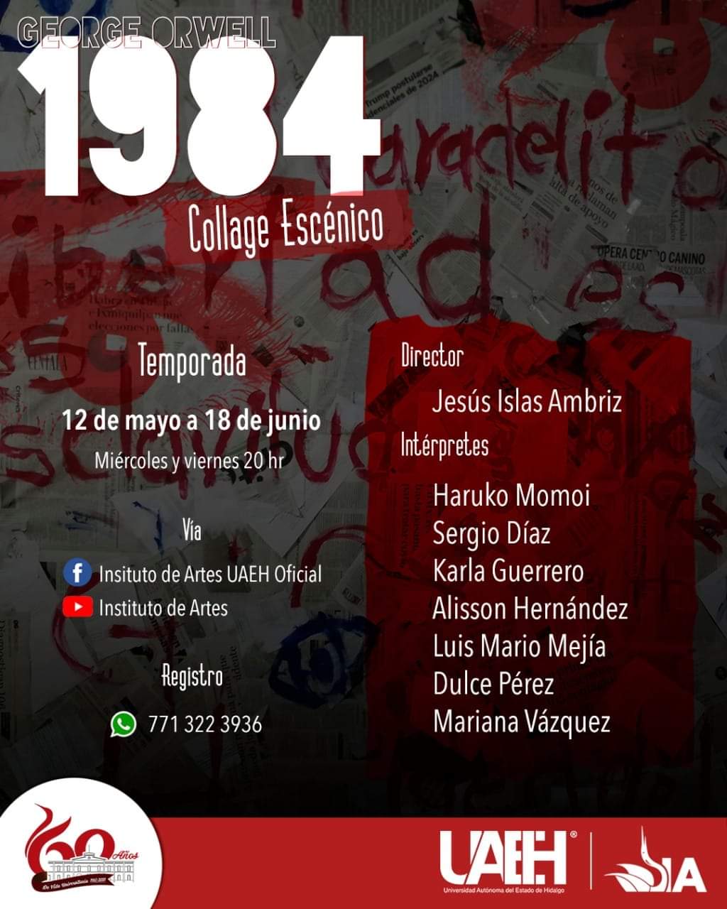 Rumbo a su última semana de funciones, estudiantes del octavo semestre de la Licenciatura en Teatro que finalizan sus estudios en el Instituto de Artes (IA), de la Universidad Autónoma del Estado de Hidalgo (UAEH), trasladaron y contextualizaron el argumento planteado en 1984, novela de ficción distópica de George Orwell, con la realidad pandémica del 2020 y 2021.
