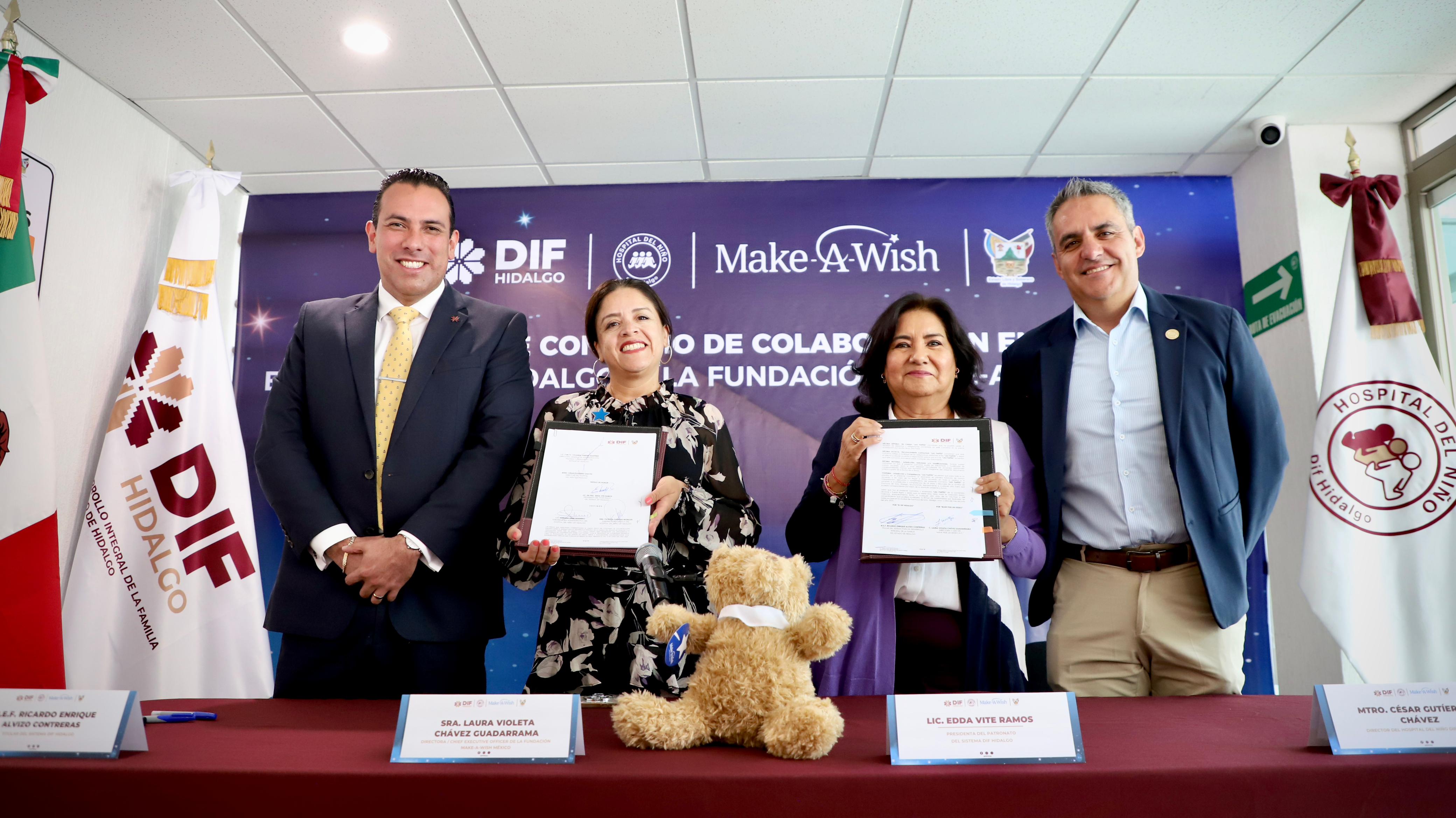 Con el objetivo de brindar esperanza, fortaleza emocional y resiliencia a niñas, niños y adolescentes que enfrentan enfermedades críticas, el Sistema DIF Hidalgo, encabezado por Edda Vite Ramos, firmó un convenio de colaboración con la Fundación Make A Wish México, convirtiéndose en el primer estado del país en formalizar esta alianza.