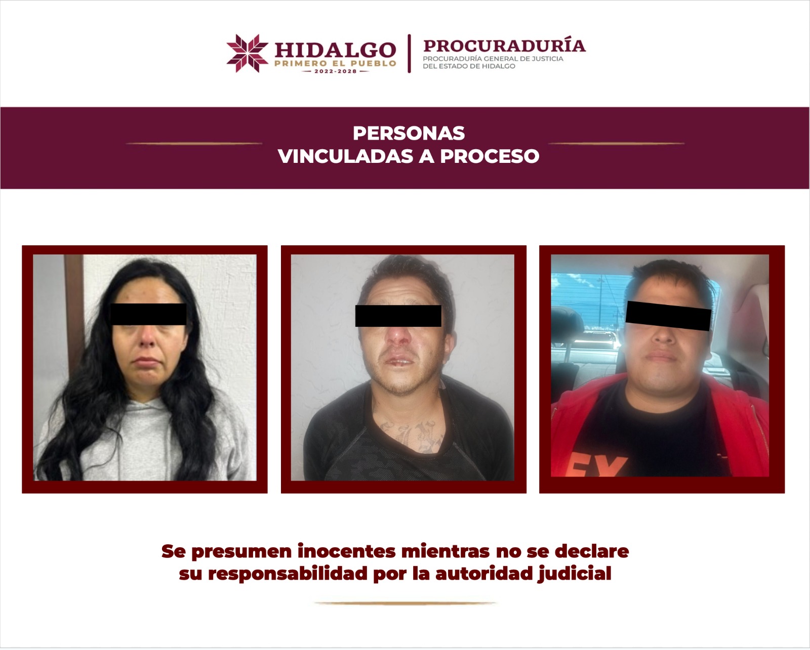 La Fiscalía Especializada en Delitos de Género y Trata de Personas se allegó de datos de prueba suficientes para que la autoridad judicial dictara el auto de vinculación a proceso para tres personas identificadas con iniciales O. Y. C., R. G. Y., y D. G. C., investigadas por hechos que la ley sanciona como feminicidio y aborto forzado, además de homicidio doloso calificado para quienes se identifican como R. G. Y., y D. G. C.