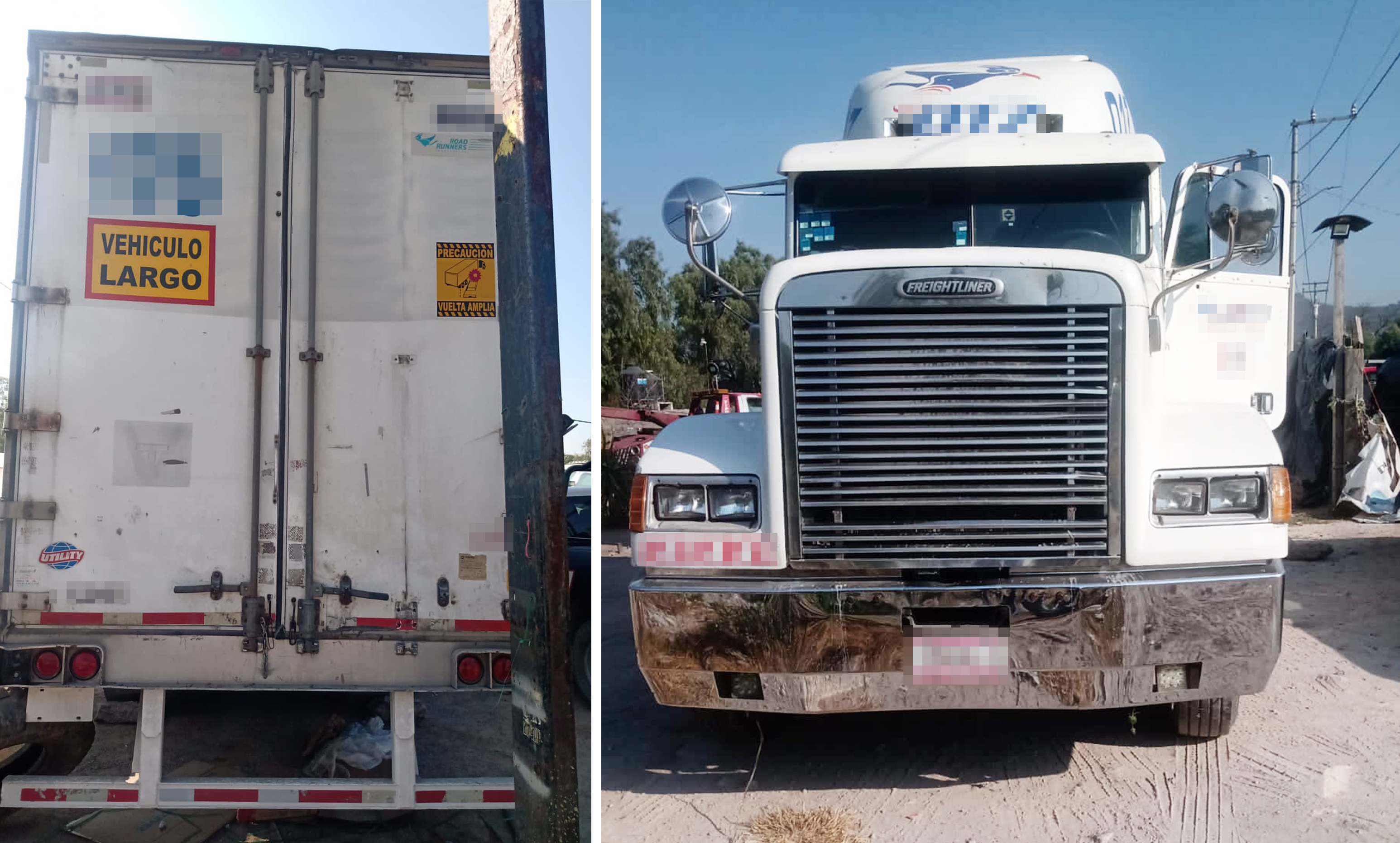 Inicialmente, en un camino de terracería de la comunidad de El Refugio, municipio de Atotonilco de Tula, oficiales estatales recuperaron la unidad marca Freightliner, color blanco, con placas del servicio público federal.