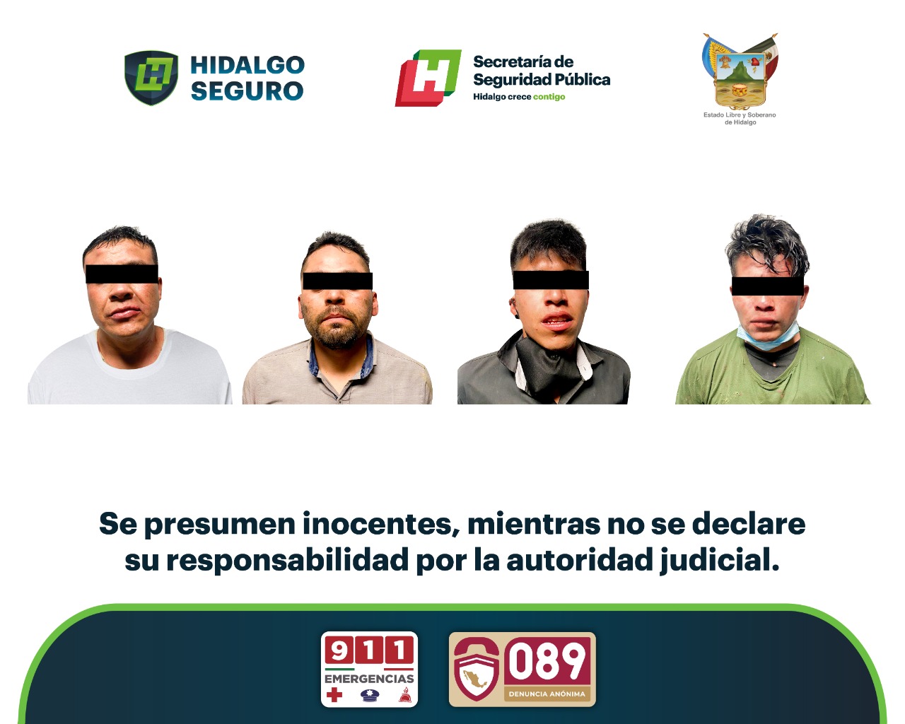 Gracias a oportuno reporte al C5i de Hidalgo, a través del 911 de Emergencias, respecto al robo con violencia en el interior de una tienda comunitaria del municipio de Acatlán, elementos de la Secretaría de Seguridad Pública de Hidalgo, en coordinación con la Policía Municipal y pobladores, aseguraron a cuatro personas presuntamente relacionadas.