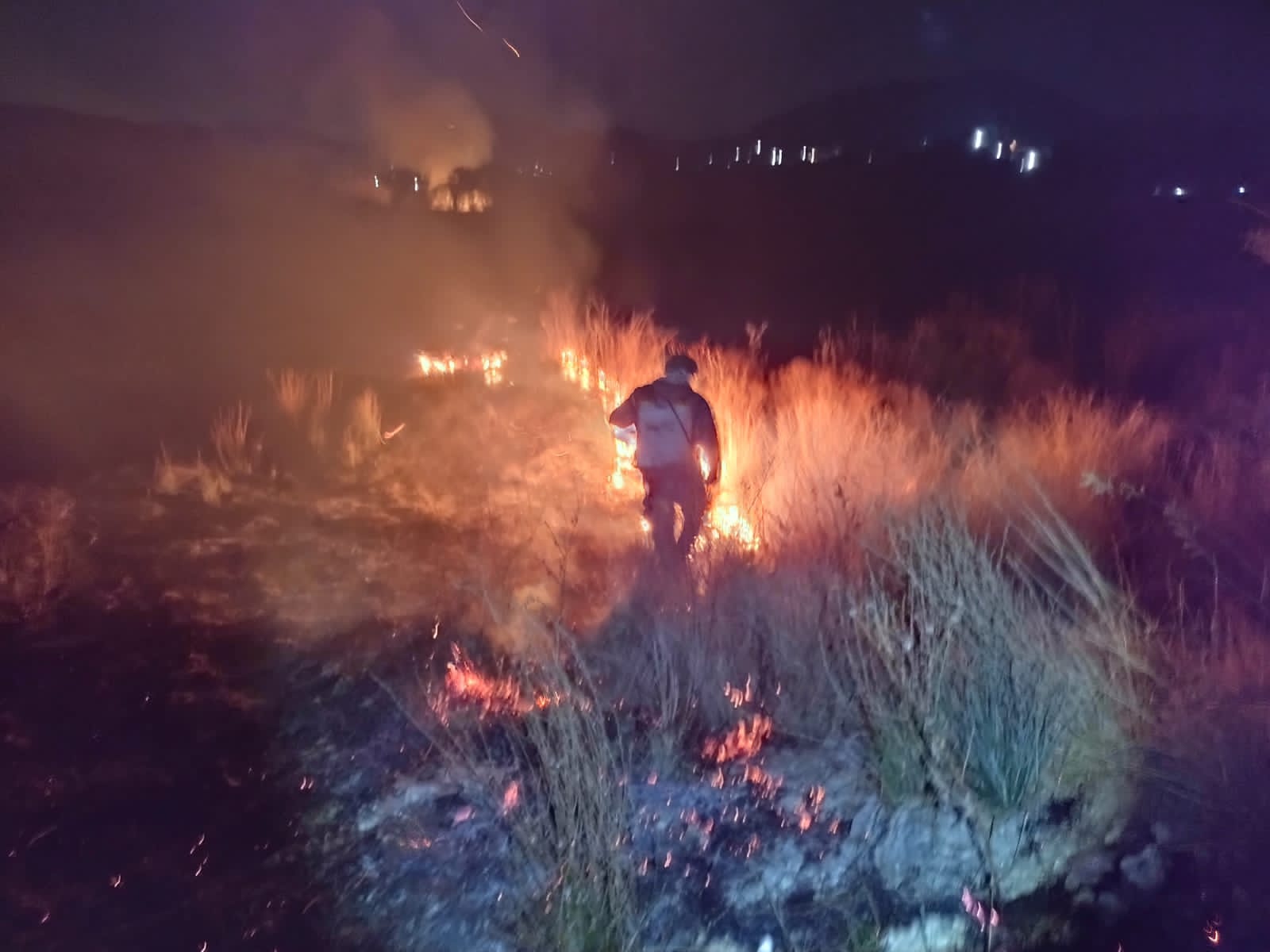 Elementos de Protección Civil de Tepeji se encuentran laborando en dos incendios reportados esta tarde.