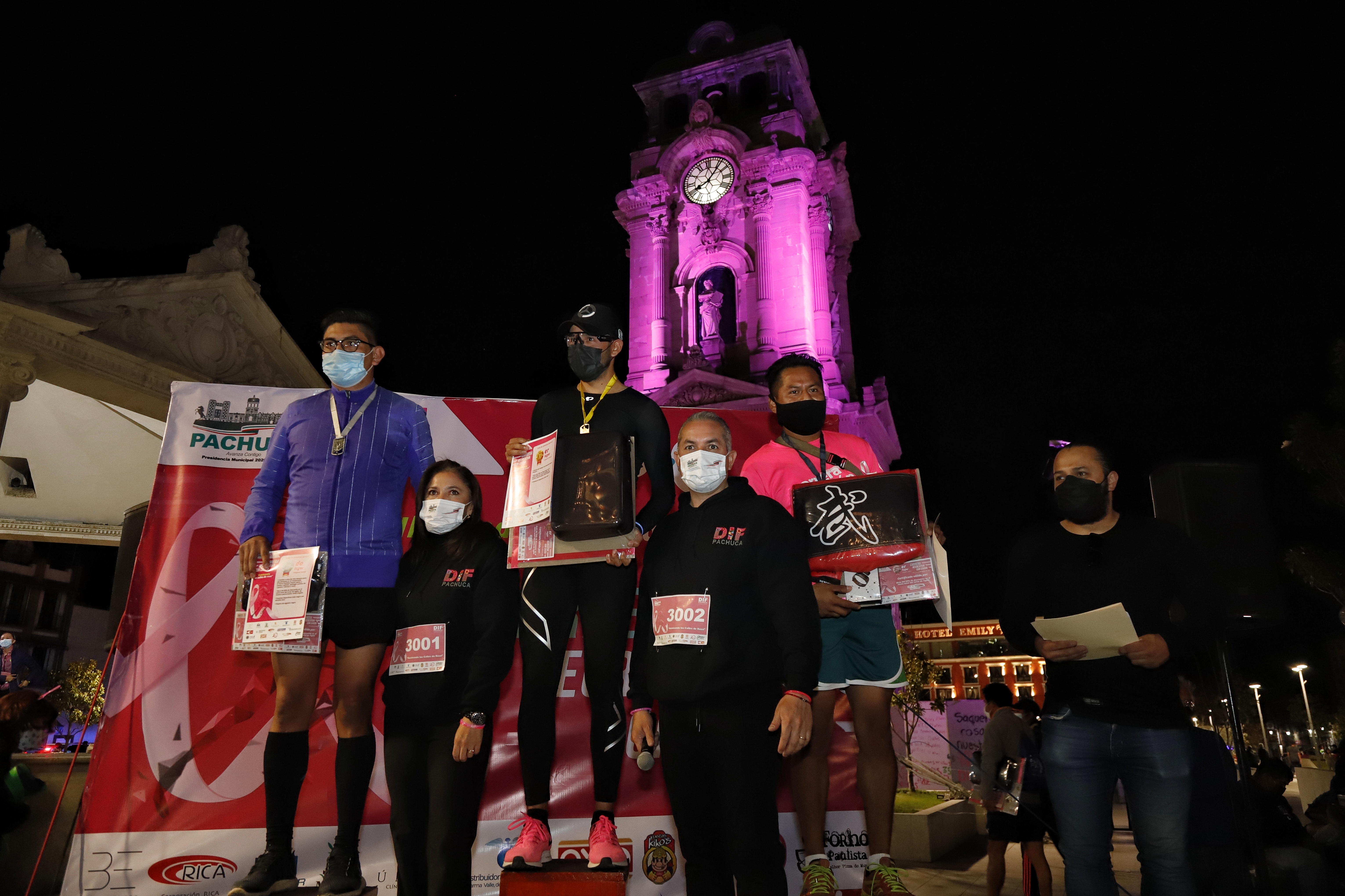 Con la participación de más de 500 personas este sábado se llevó a cabo la Carrera Recreativa con Causa de 3 y 6 kilómetros “Iluminando las Calles de Rosa”, organizada por el Sistema DIF Pachuca.