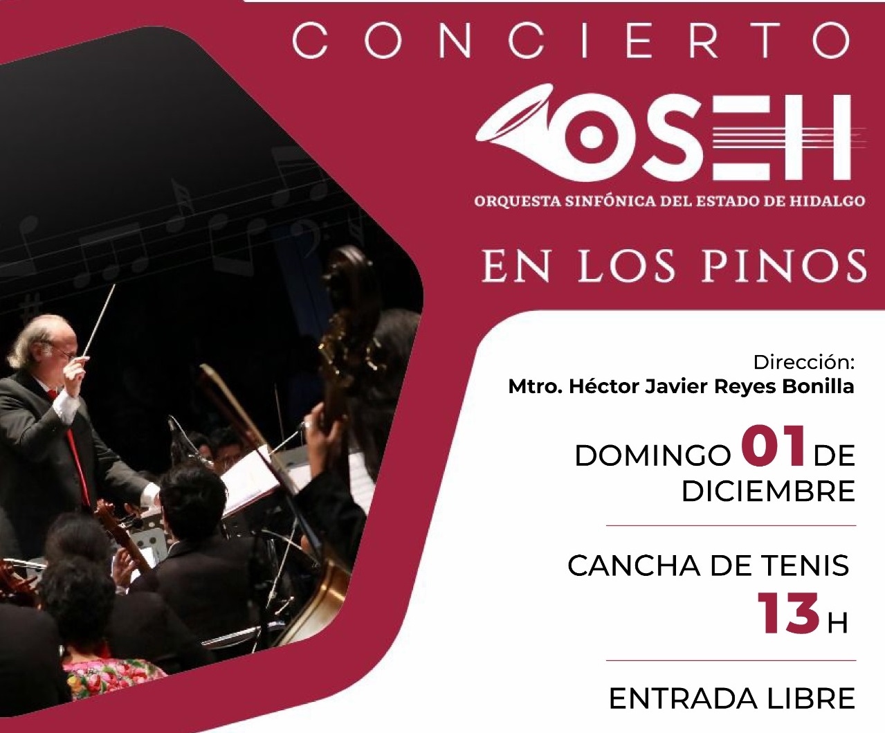 Secretaría de Cultura de Hidalgo y el Complejo Cultural Los Pinos, colaboran para realizar concierto