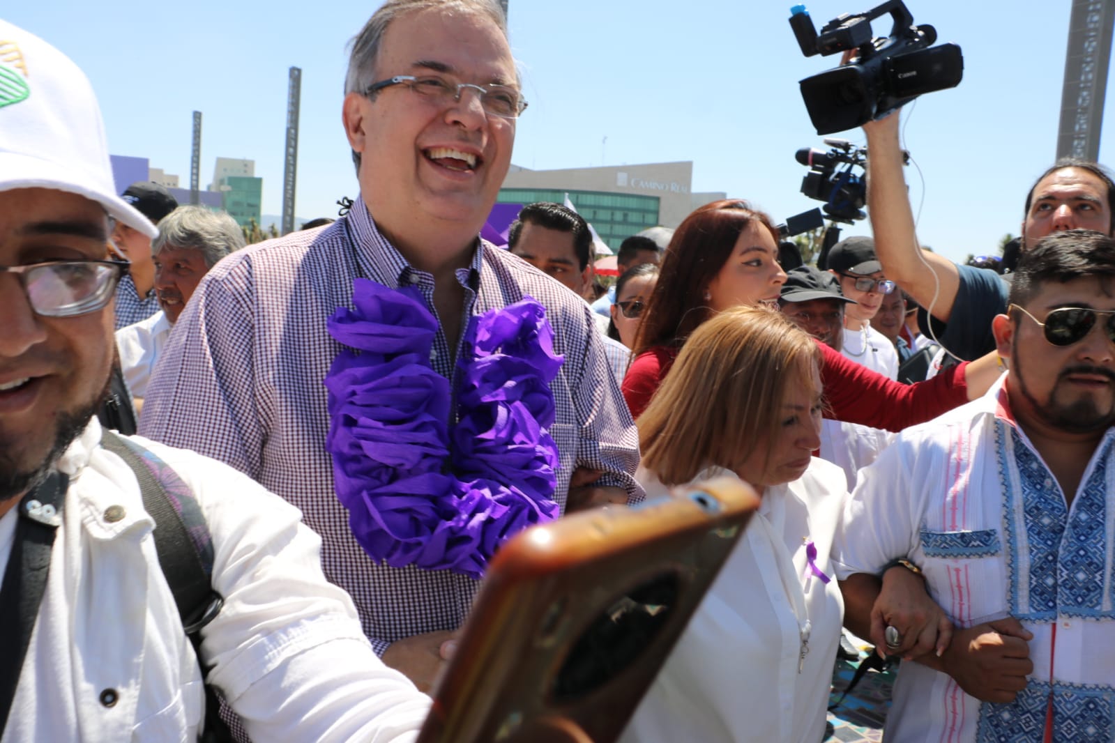 Al final, Ebrard -apoyado sólo con un megáfono, pues no había más audio- dio un breve mensaje en el que también se limitó, pues las reglas morenistas no permiten difundir propuestas.