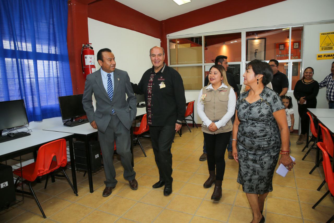 El titular del Instituto Hidalguense de Educación (IHE), Natividad Castrejón Valdez, visitó la Escuela Secundaria General “Josefa Bustamante”, ubicada en el municipio de Zimapán, la cual fue beneficiada con mobiliario y equipo de cómputo.