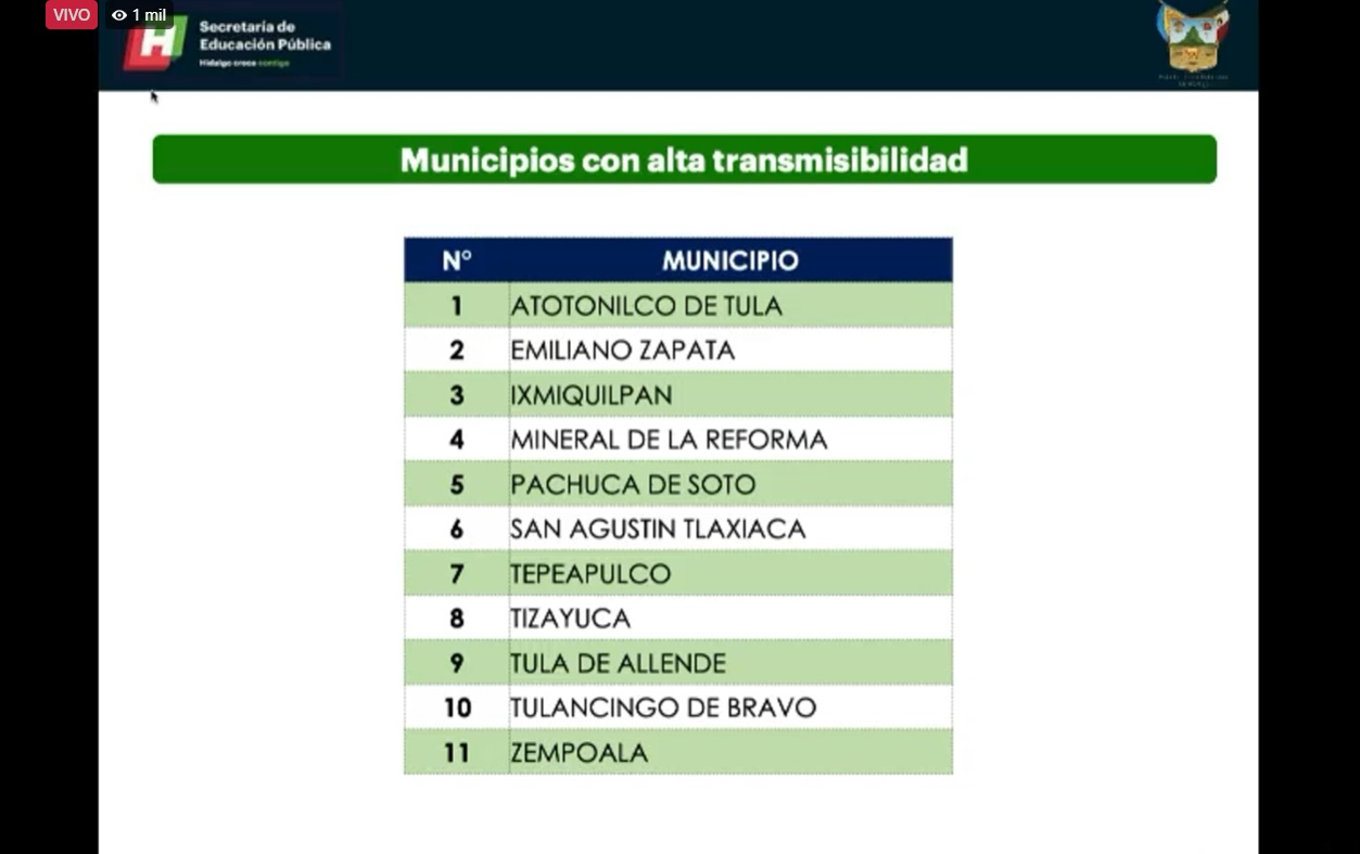 !1 municipios de Hidalgo con alta incidencia covid19 culminarán ciclo escolar a distancia