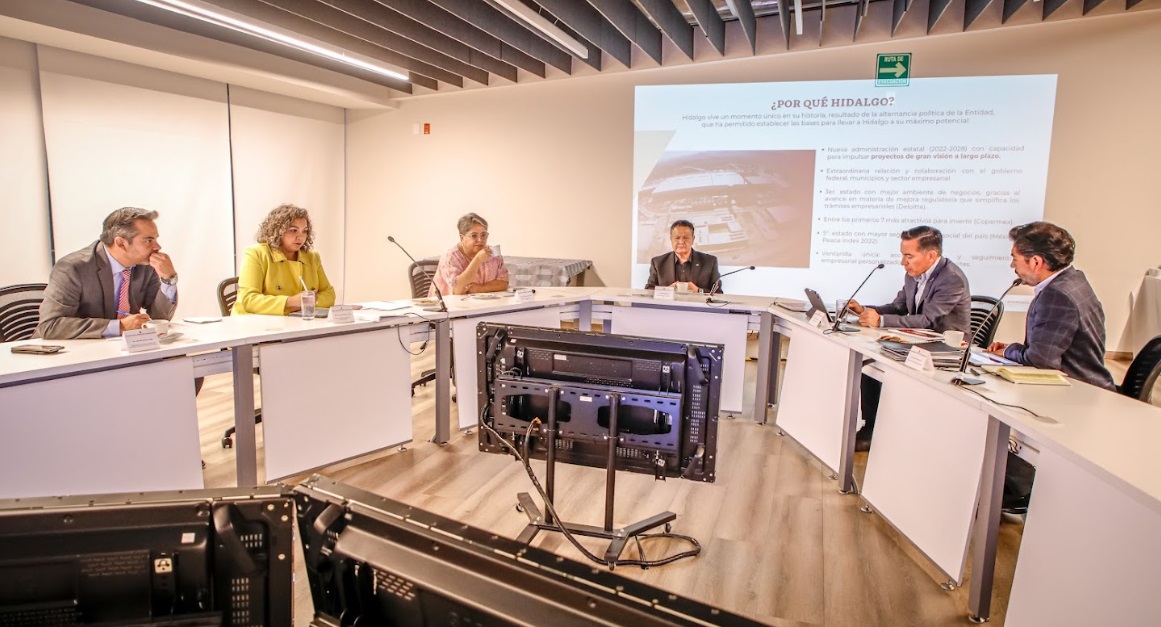 El gobernador del estado de Hidalgo, Julio Menchaca Salazar, y la secretaria de Economía del gobierno federal, Raquel Buenrostro Sánchez, se reunieron para analizar las ventajas con las que cuenta la entidad para atraer inversiones y así potencializar su economía.