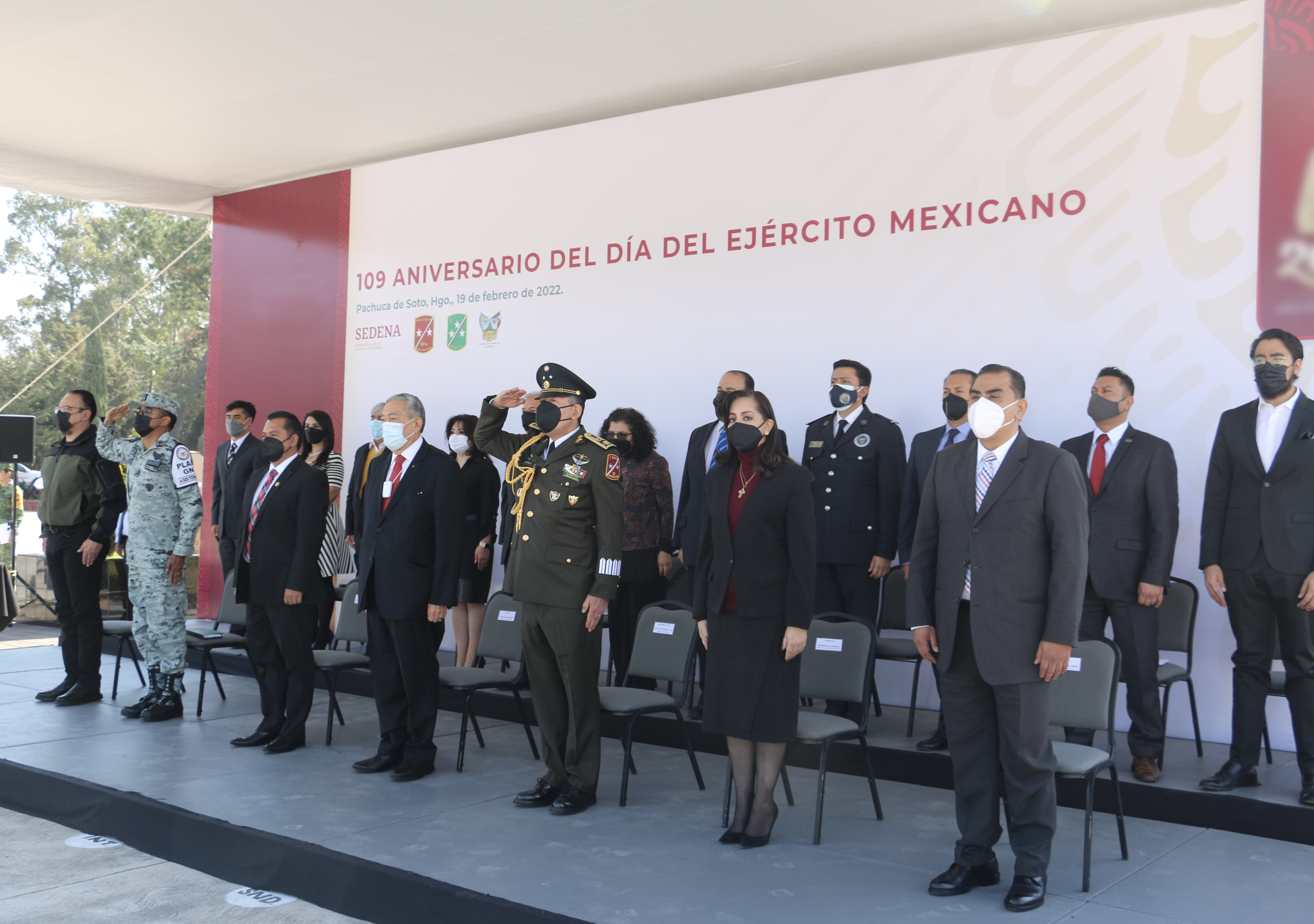 En el marco del CIX Aniversario del Día del Ejército Mexicano servidores públicos de los tres órdenes de gobierno homenajearon al personal militar por su labor.