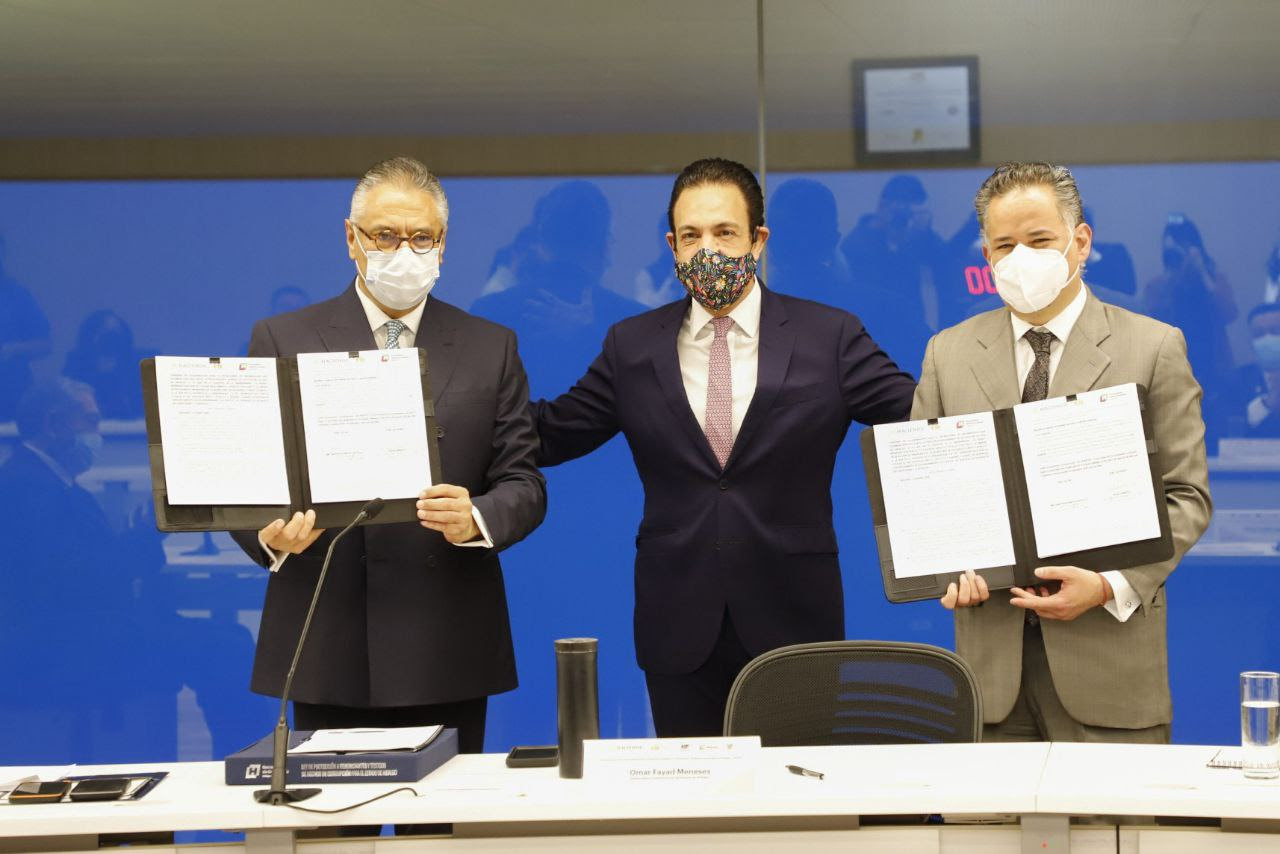 El gobernador del estado Omar Fayad y Santiago Nieto Castillo, titular de la Unidad de Inteligencia Financiera (UIF), del gobierno federal, firmaron un convenio de colaboración que fortalecerá el combate a la violencia, delincuencia, actos de corrupción, lavado de dinero, financiamiento de actos ilícitos, así como de actos terroristas cometidos por servidores públicos y particulares.