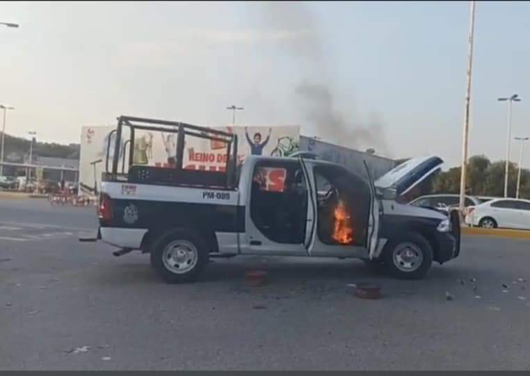 Civiles incendiaron una unidad de Seguridad Pública Municipal que iba llegando al lugar de los hechos.