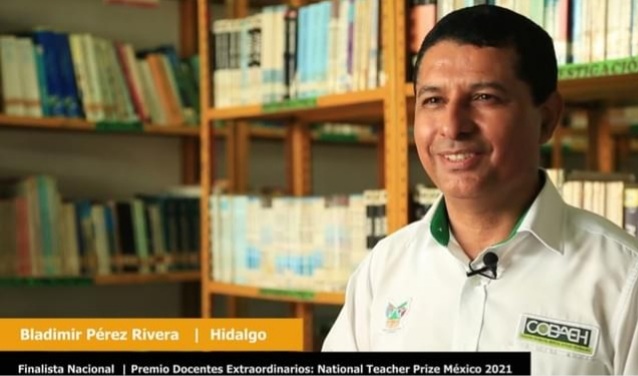 El Doctor en Ciencias Bladimir Pérez Rivera, Docente del Centro de Educativo de Tehuetlán logró pasar a la última fase en la competencia nacional en el Premio Docentes Extraordinarios National Teacher Prize México 2021, tras superar a más de 3,200 postulaciones de toda la República Mexicana y colocarse entre los 10 últimos finalistas, como único representante de esta institución educativa y del Estado de Hidalgo.