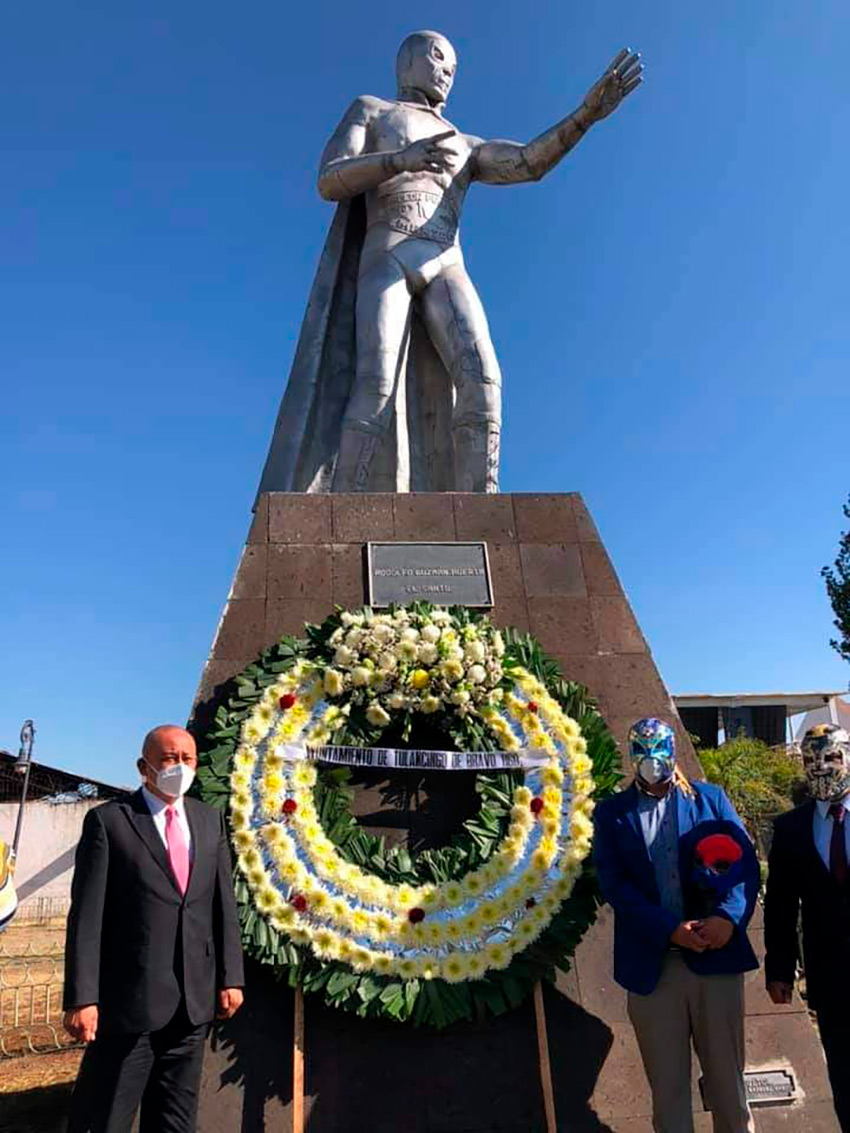 En el marco del 37 Aniversario luctuoso de Santo El Enmascarado de Plata, autoridades del ayuntamiento de Tulancingo montaron una guardia de honor, en el monumento al celebre luchador ubicada en la Estación del Ferrocarril, de Tulancingo.