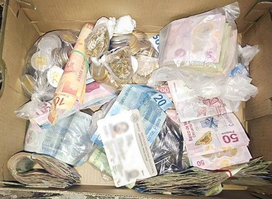 En el despliegue operativo que realizó la SSPH, en coordinación con la Procuraduría General de Justicia del Estado (PGJEH) y con agentes de la Sedena, se logró el aseguramiento de 57 mil pesos en efectivo, producto de la venta de droga; además de 71 dosis de droga sintética tipo “cristal”, 50 dosis de hierba seca con características de la marihuana y una identificación oficial a nombre de M.A.F.H.