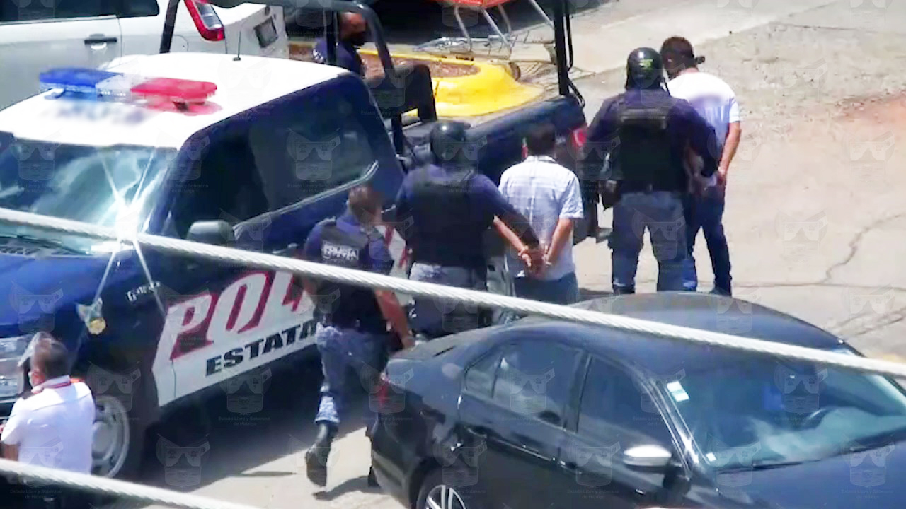 En acciones de prevención y combate al delito, agentes de la Secretaría de Seguridad Pública de Hidalgo aseguraron a dos personas presuntamente relacionadas con el robo con violencia en un domicilio de la colonia Forjadores, municipio de Mineral de la Reforma.
