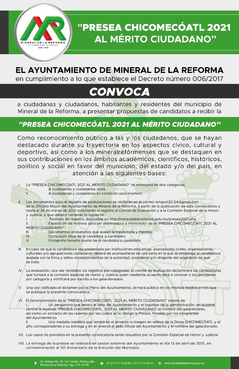 La “PRESEA CHICOMECÓATL 2021 AL MERITO CIUDADANO” se entregara en dos categorías